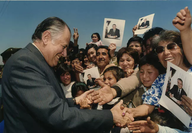 Imagen monocroma de formato rectangular disposición horizontal. Composición de figura femenina de busto en primer plano de cabello corto, ondulado y oscuro. Viste bufanda blanca atada al cuello y chaqueta con diseños de rayas. Fondo cortinas oscuras.