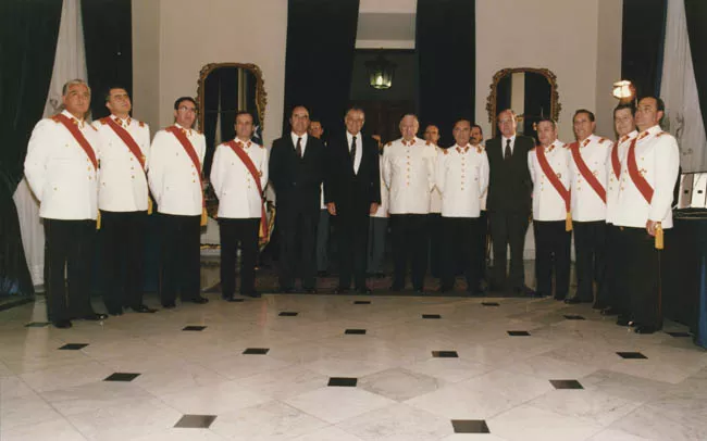 AYLWIN CON MINISTRO DEFENSA Y GRALES. EJ