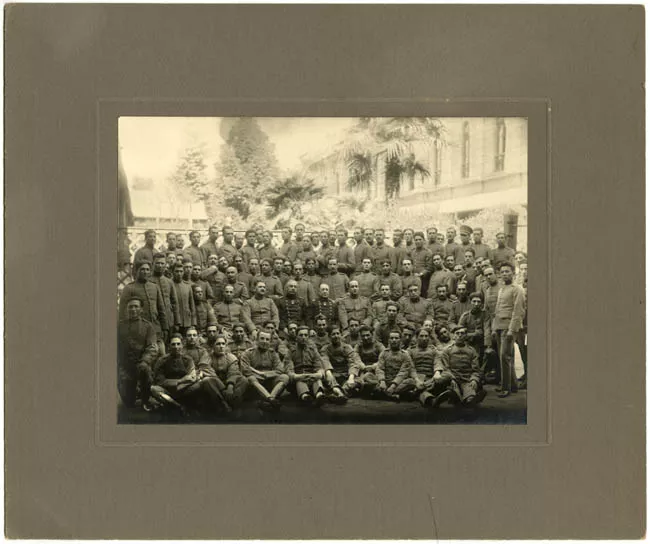 Formato rectangular. Retrato grupal. Figuras masculinas vistiendo unif...