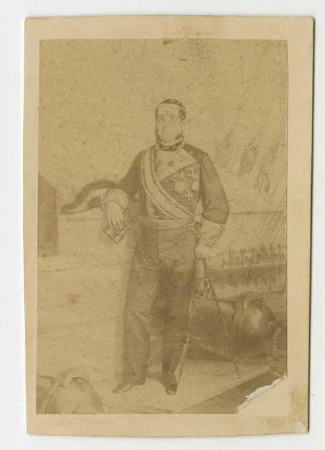 Retrato de figura masculina de medio busto, en postura frontal, que di...