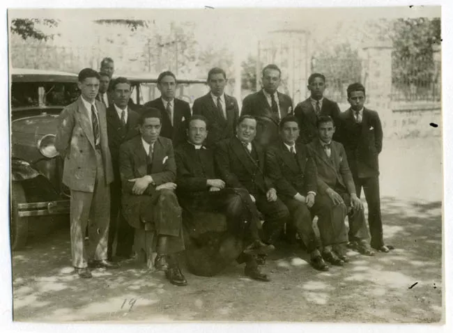 Fotografía rectangular, orientación vertical en blanco y negro de un hombre en plano medio.
