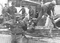Reproducción fotográfica, orientación vertical en blanco y negro de litografía de un hombre con vestimenta militar y sombrero. En el cuello cadete de su chaqueta el número 4. Usa barba y bigote. Se encuentra inserto dentro de un marco decorado. En la parte inferior de la imagen el escrito "El Teniente-Coronel Don Juan José San Martín"
