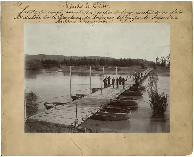 Puente sobre el río Andalién construido por la Cía. de Pontoneros del grupo de ingenieros militares "Concepción"