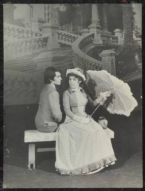 Carmen Barros y pareja en obra de teatro