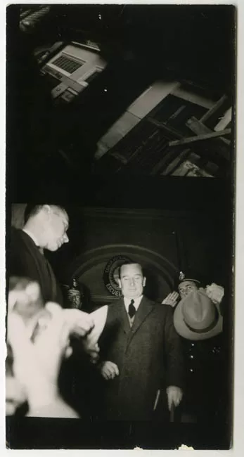 Fotografía blanco y negro de cuatro tenistas en cancha de tenis saludá...