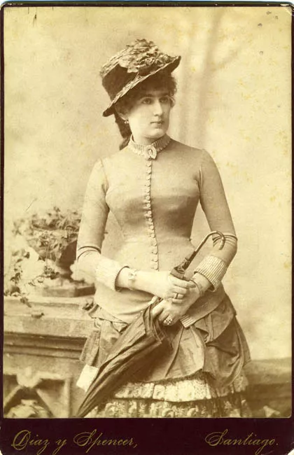 Formato rectangular. Retrato individual de estudio. Niña de tez y ojos claros, con pelo rubio, corto y ondulado. Levanta su mano derecha hacia su oreja derecha, lleva aros. Se asoman dientes de leche. Se encuentra sin ropa. Rostro levemente inclinado hacia arriba con la mirada hacia el frente. Fondo neutro. Lleva timbre al reverso.