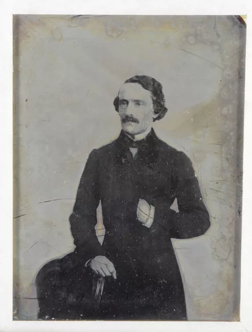 Retrato de hombre en placa de vidrio, cubierta con vidrio. Falta estuc...