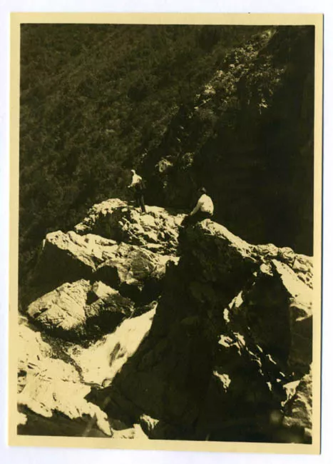 Fotografía blanco y negro de un coro de hombres y mujeres. En primera ...