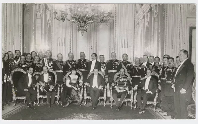 En primer plano se encuentra un hombre de edad madura con vestimenta formal, que está ubicado en el borde lateral dereho, se encuentra de perfil observando hacia la izquierda y con su brazo derecho alzado y con su mano está haciendo un gesto con su dedo medio. Detrás de él se encuentran dos hombres más a uno le tapa la cara el brazo del primero, y sólo se ve su ojo, oreja y frente. El último observa hacia el "infinito", se puede ver claramente su cara.