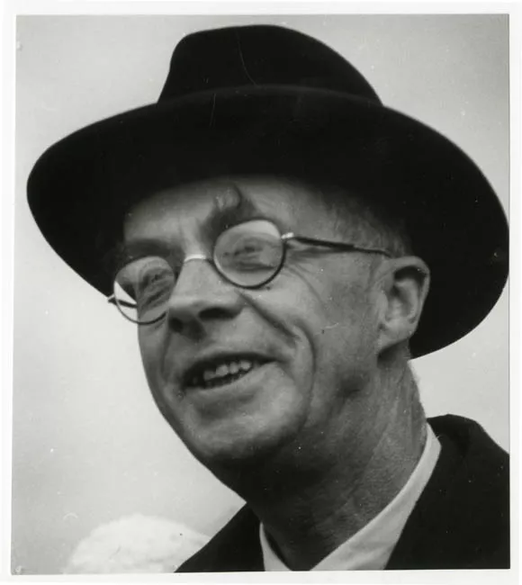 La imagen monocroma, de formato rectangular dispuesta horizontalmente, representa un niño con una pala en las manos, cavando la tierra. Tras él otras personas.
