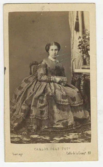 La imagen monocroma, de formato rectangular dispuesta horizontalmente, representa un grupo de niñas vestidas con delantal blanco, en un patio de concreto.