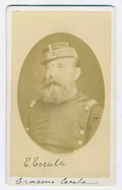 La imagen monocroma, de formato rectangular dispuesta horizontalmente, representa unas personas al interior de un almacén.