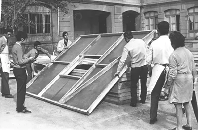 Formato rectangular. Fotografía documental en interior. Galpón con e...