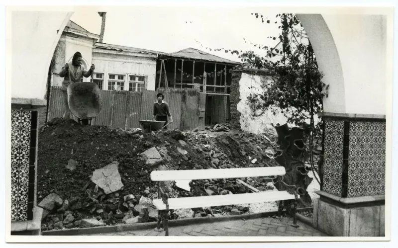 Positivo papel copia, monocromo, estructura formal paisaje urbano, esp...