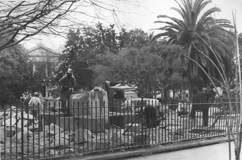 Copia fotográfica en blanco y negro, de formato rectangular y orientac...
