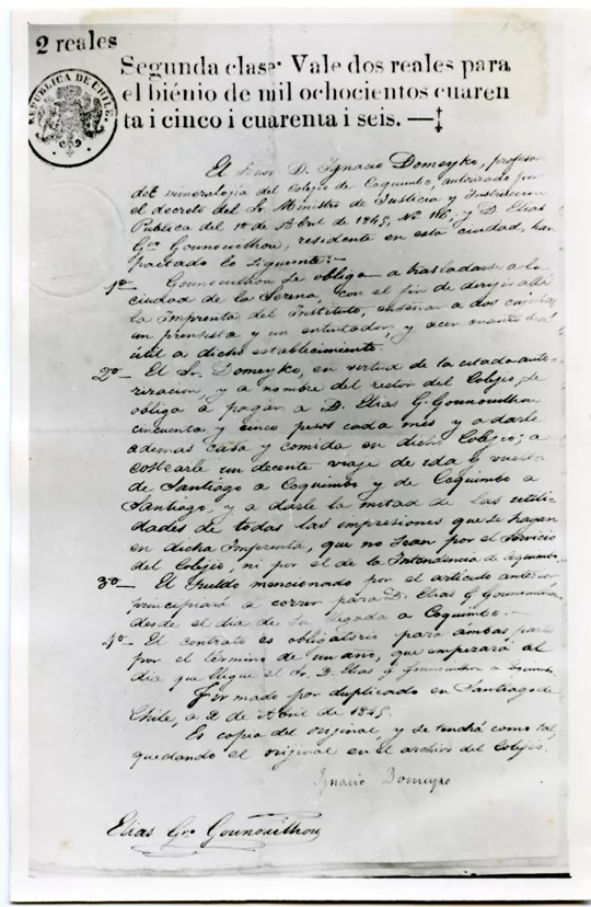 Documento histórico de Liceo de Hombres de La Serena, 1845