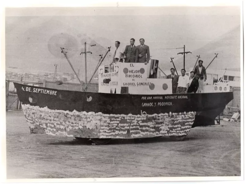 Carro propagandístico del Sindicato de Jornaleros del Mar en apoyo a Gabriel González Videla