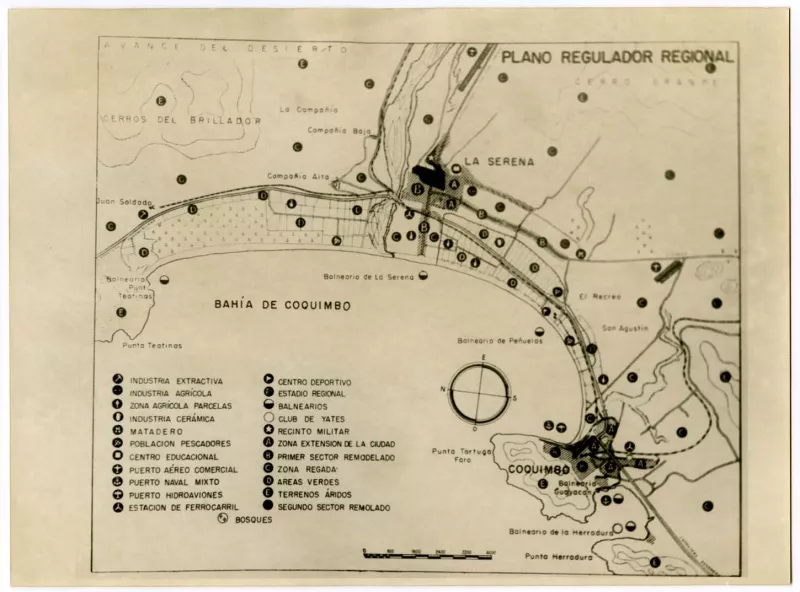 Positivo, monocromo, estructura formal reproducción, especialidad fotográfica registro. Plano general de un territorio costero. Se presenta el emplazamiento central de una bahía y se señala algunos hitos geográficos.