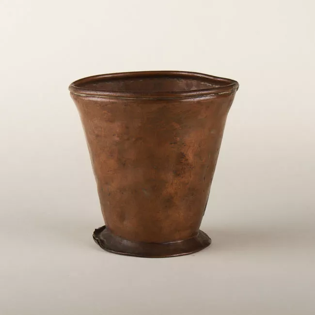 La marca es un dibujo, diseño o signo impreso a hierro candente, se usa para individualizar al ganado. Objeto alargado compuesto por un vástago cilíndrico y un sector activo con la letra R mayúscula laminada. Hierro forjado de color marrón oscuro con manchas anaranjadas.