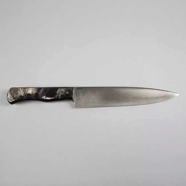 Llave tubular corta, extremo proximal tiene empuñadura pequeña, plana, de forma circular con interior en forma de medialuna. Tija tubular, lisa y abierta en extremo distal. Tiene paletón de forma rectangular, ancho y corto, con una muesca, es decir un diente con forma de gancho. De color bronce con variación de color.