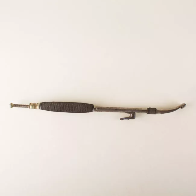 Objeto de uso médico. Pieza metálica plateada en forma de vara con ext...