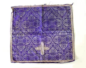Banda de tela blanca, ensanchada en los extremos. Todo el borde lleva con cinta dorada de hilos de metálicos y pasamanería, flecos, en los extremos. Decorada con tres cruces de cinta sobre puesta del mismo material de los bordes. Interior, tela roja.
