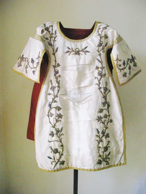 Figura masculina semi desnuda, de brazos (falta brazo derecho) abierto...