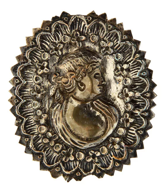 Objeto de devoción cristiana, usado como ofrenda; es lámina elíptica, ...
