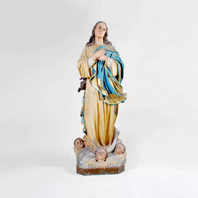 Obra exenta. Figura femenina de bulto y talla de cuerpo entero y de pi...