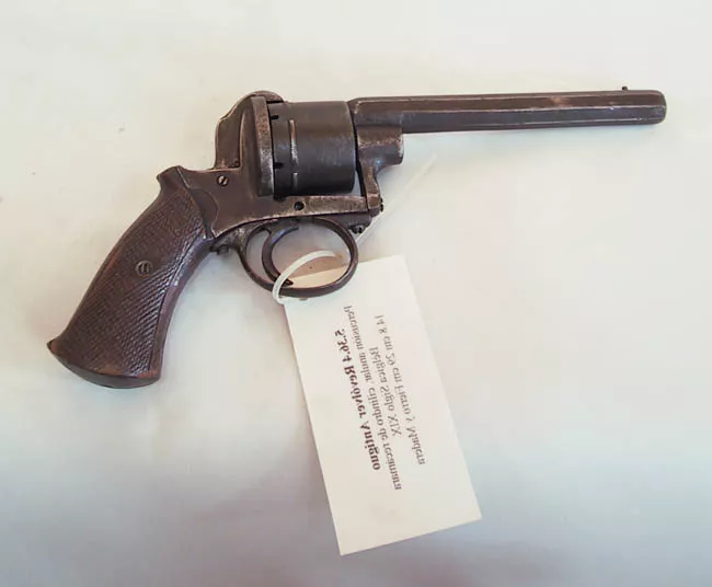 Mecanismo de acero con aguja percutora en su lado derecho.