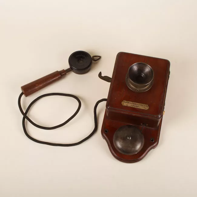Objeto utilitario. Contenedor rectangular con tapa unida a la base por medio de un par de bisagras, y asa metálica en su cara superior. En su interior posee tres cuerpos cilíndricos de distintos tamaños y diámetros realizados en metal. Uno de ellos posee tubo de cristal.