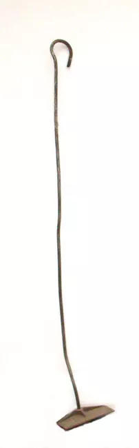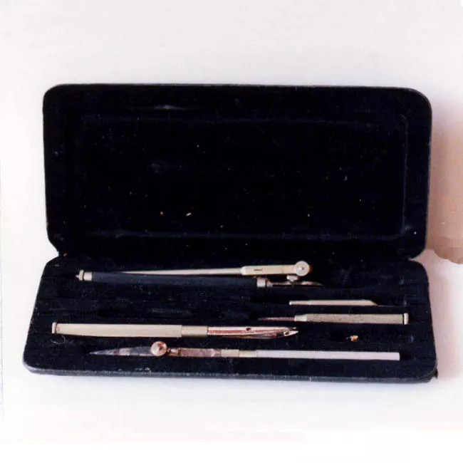 Objeto de forma cilíndrica, de vidrio translúcido, angosto en su parte superior. Tiene etiqueta de color beige con inscripciones en rojo. Aún contiene líquido en su interior.