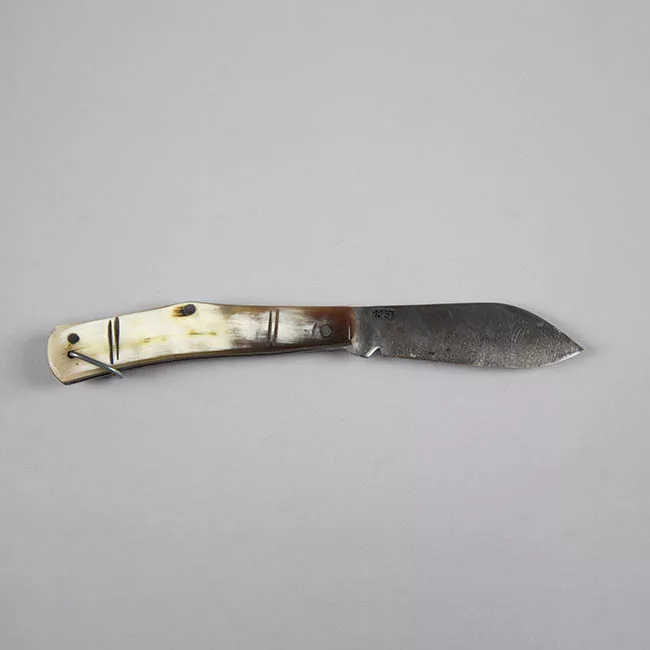Utensilio de uso domestico de cuerpo oblongo, de madera. Posee en un e...