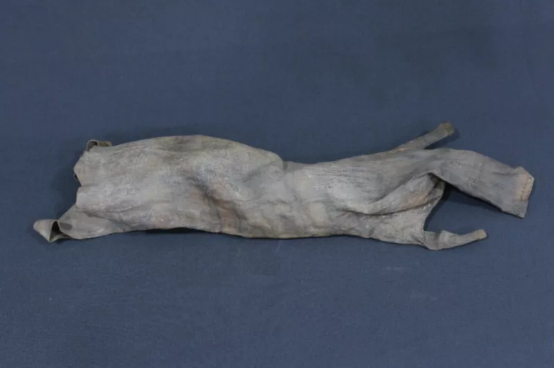 Bolso de cuero con forma de animal, color marrón grisáceo, abierto en...