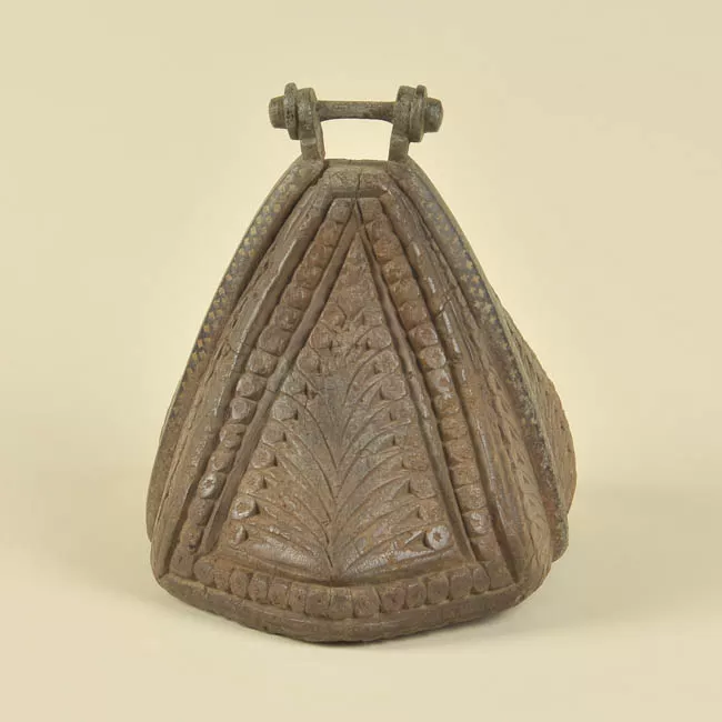 Pluma de metal dorado con mango de madera, que va en un extremo pintad...