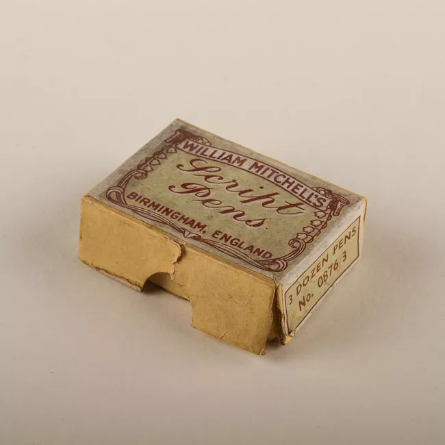 Objeto metálico con forma de prisma triangular que sirve para escrib...
