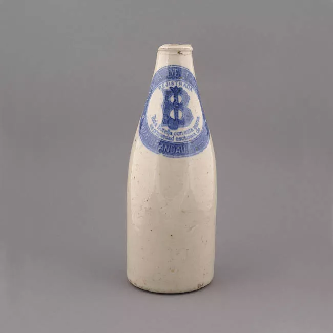 Posee forma circular de color negro, con estrías también circulares. En la parte central de una cara tiene una etiqueta de color burdeos con letras doradas.