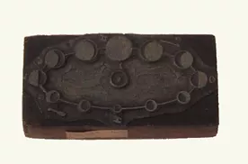 Objeto de escritorio. Pieza rectangular blanca oscura con inscripcione...
