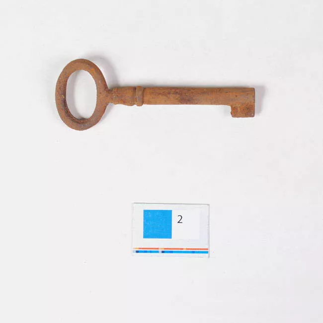 Objeto de forma circular de color plateado, con una esfera de color bl...