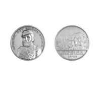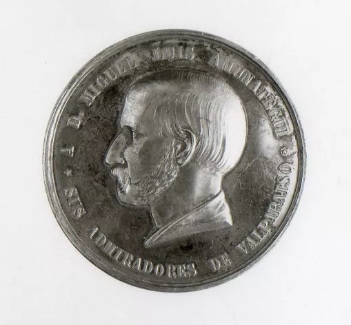 Medalla circular, el anverso presenta el busto de un militar, de rostr...
