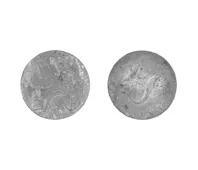 Objeto metálico de forma circular con borde regular, con dos caras sem...