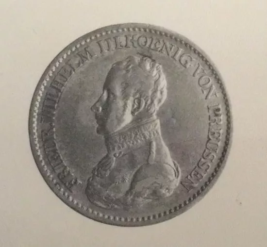 Objeto metálico de forma circular. En el anverso aparece una cabeza fe...
