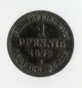 Objeto metálico de forma circular, con dos lados en relieve. Por uno d...