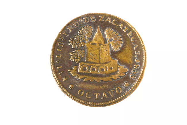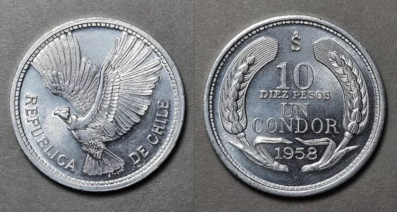 Moneda circular en cuya cara figura un cóndor en vuelo a la izquierda ...