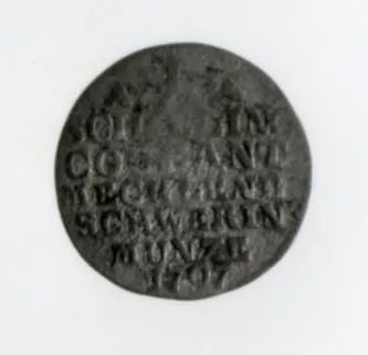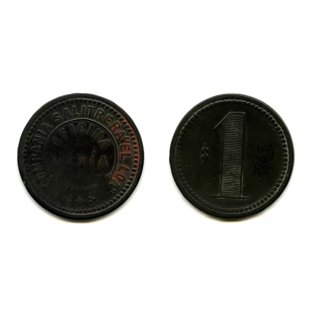 Objeto metálico de forma circular, con bordes irregulares. Por el anverso representa un elefante pisando una serpiente, con una inscripción en la parte inferior. Por el reverso, instrumentos de sacrificio.
