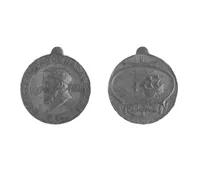 Moneda de bronce circular. Presenta una efigie en una de sus caras. En...