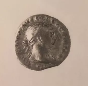 Objeto metálico de forma circular, de bordes irregulares. Por el anverso aparece un busto masculino de perfil hacia la derecha, representación del emperador Constantino II el joven, con corona de laureles y leyenda circundante. Por el reverso una corona de laurel con leyenda al interior y circundante.