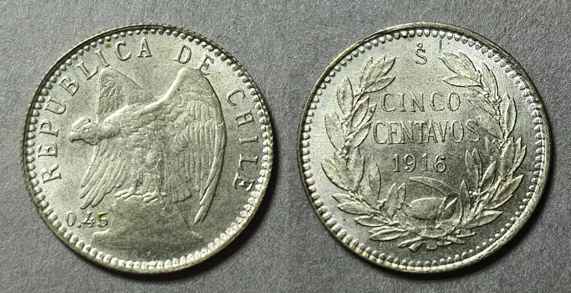 Moneda circular con un cóndor en anverso, tiene alas desplegadas y est...