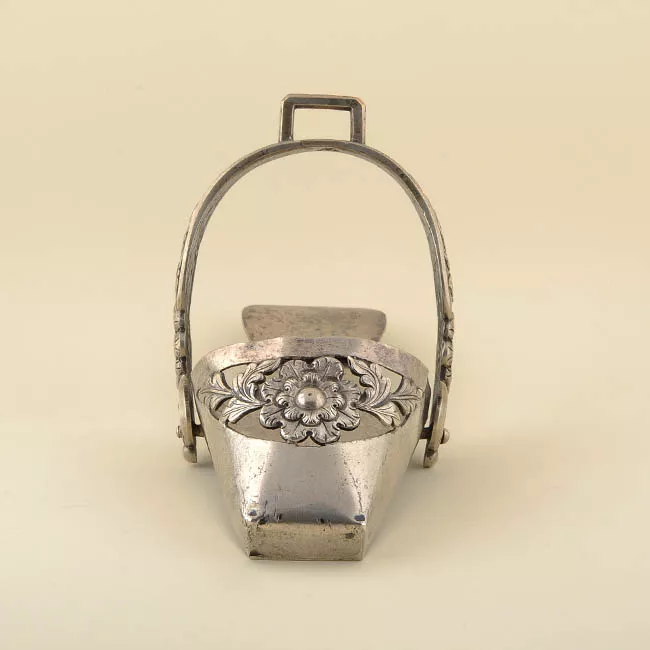 Objeto metálico de color café, fabricado en bronce. Consiste en un receptáculo circular de metal bronceado con soporte de madera. Dentro de él, esfera perforada, con botón en el centro.