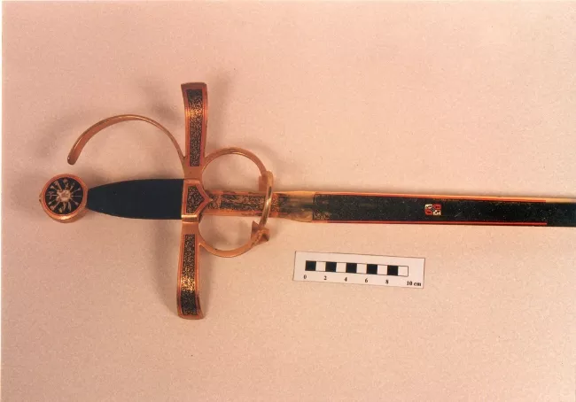 Arma blanca cortopunzante de mano, compuesta de empuñadura, guardamano...